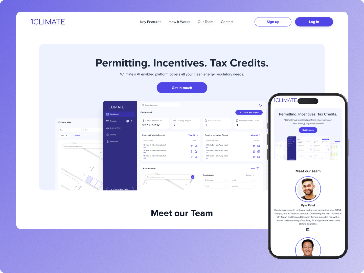 With growing demand for clean energy and strict environmental rules, 1Climate makes the process easier. It allows users to plan, apply, and comply with clean energy regulations, including tax credits, permissions, and licenses.